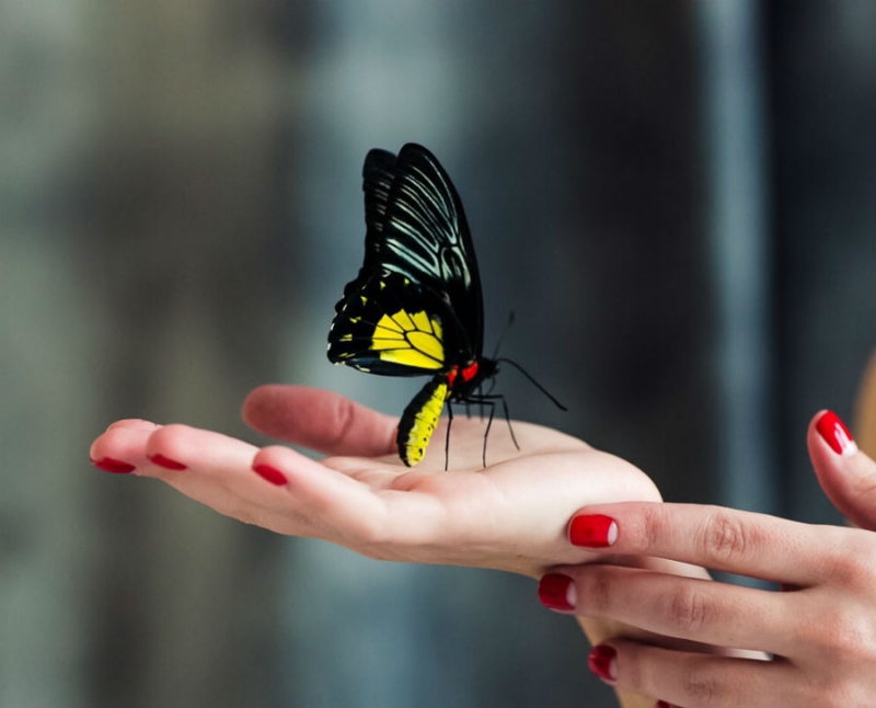 Невероятная бабочка с яркими желтыми пятнами на насыщенно черных крыльях.